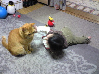 自力でセンちゃんにタッチ!