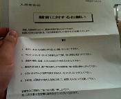 今日、こんな文書がワタクシ宅に届いた。