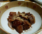以前紹介した、炊飯器クッキングの成果でござーます。 「豚バラ肉と大根の韓国風煮」 ヨメさんに拍手。\( ̄▽ ̄)/