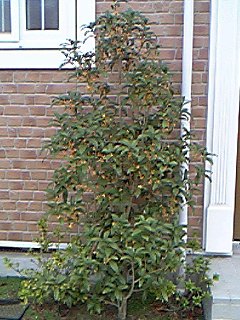 先日配達に来た宅急便のおじさんに、「キンモクセイがいいにおいになってきたねぇ(*^_^*)」っていわれたからなんのことかなって思ったら、うちの玄関の隣にキンモクセイの木がありました。なのでとりあえず一枚とりました。それにしても、ここは自然が豊かでのんびりしています。